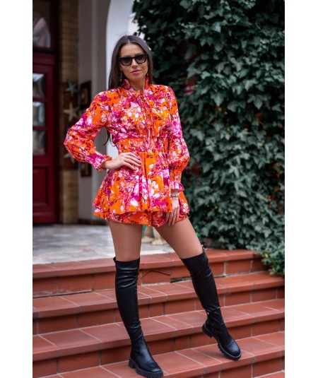 Kombinezon o kroju sukienki oraz urokliwym print'cie tkaniny. Wiązanie na szyi umożliwi samodzielną regulację. Ten model możesz nosić na dwa...