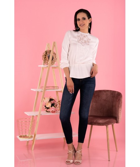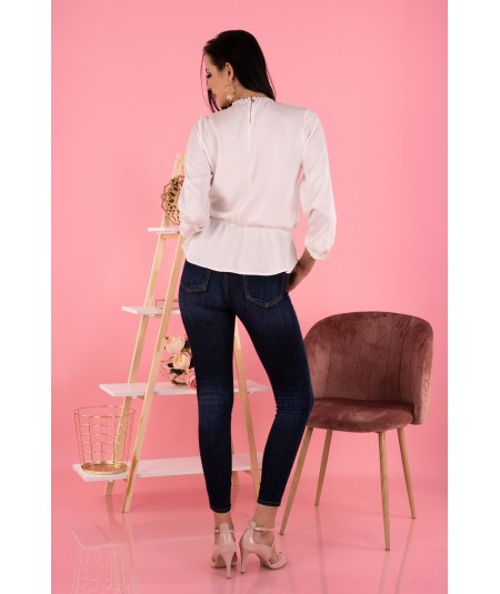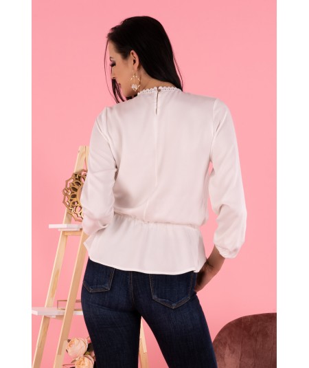 Bluzka Iseara z ozdobnym dekoltem, w kolorze białym dostępna jest w czterech rozmiarach S, M, L, XL. Skład materiałowy to 100% RAYON