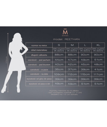 Sukienka Reethan w kolorze granatowym, dostępna jest w czterech rozmiarach S, M, L, XL. Skład materiałowy to; 95% POLYESTER 5% ELASTANE