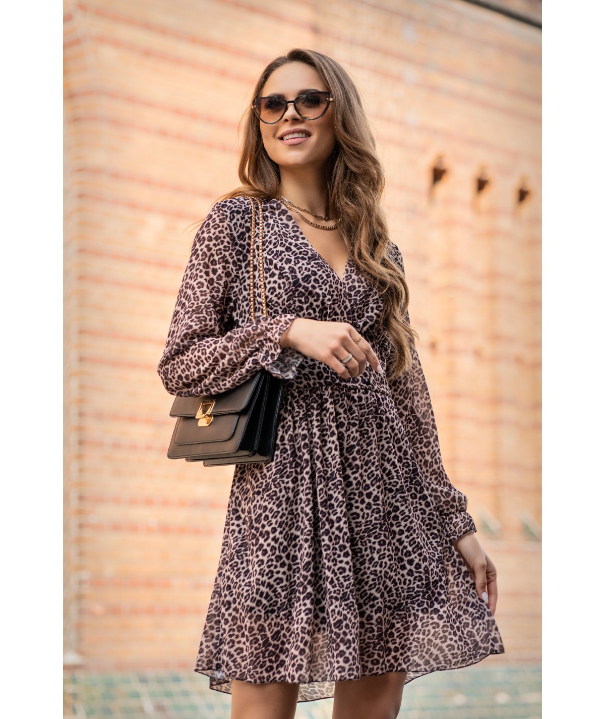 Sukienka Arnila z modnym printem w cętki, dostępna jest w dwóch rozmiarach S/M, L/XL. Skład materiałowy to: 100% POLYESTER